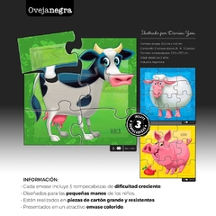 Rompecabezas de dificultad creciente. 6,9,12 piezas. Línea distinguida con el SBD Sello Buen Diseño que otorga el Ministerio de Producción.